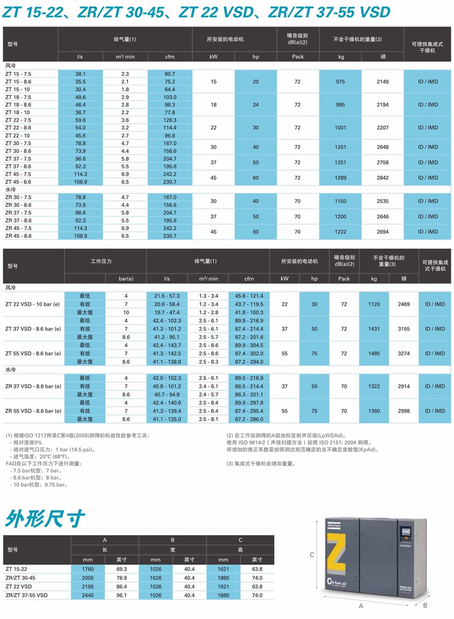 ZR ZT (VSD) 螺桿式和旋齒式無油空氣壓縮機